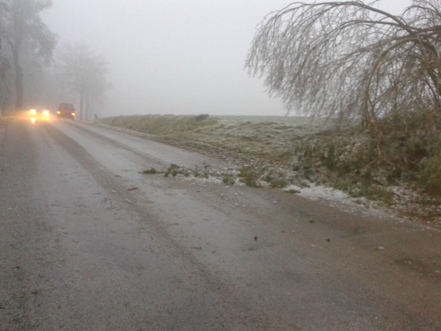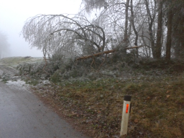 Ein Baum war durch die Last des Eises umgestürzt und auf die Fahrbahn gefallen.