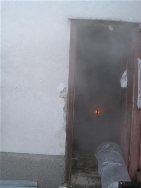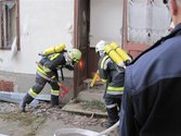 Als wir an der Übungsstelle (Wohnhaus in der Hauptstraße) angekommen waren, berichtete uns die hysterische und unter Schock stehende Hausbesitzerin einen Brand im Wohngebäude worin sich fünf Personen befanden.