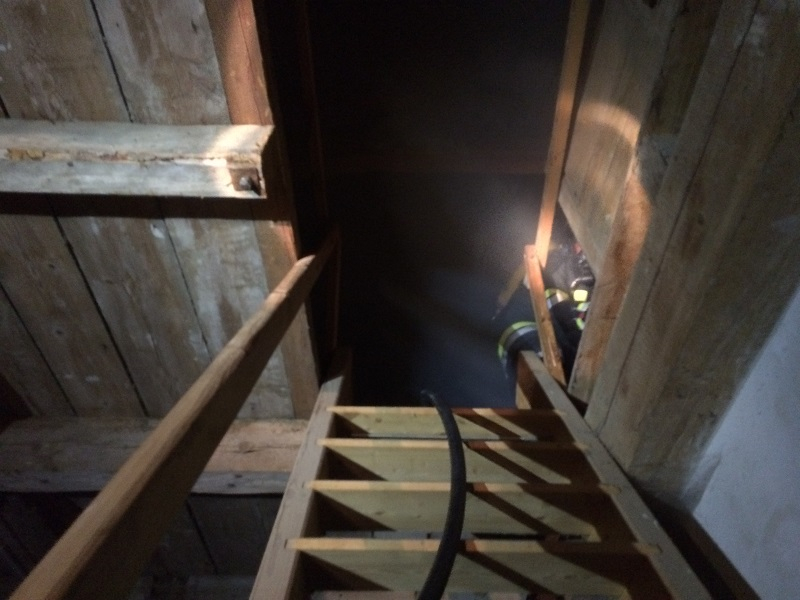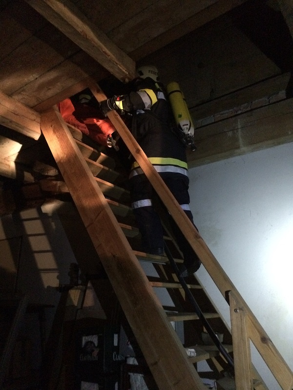 Übungsannahme war ein Brand im Dachboden im Pfarrheim mit einer vermissten Person.