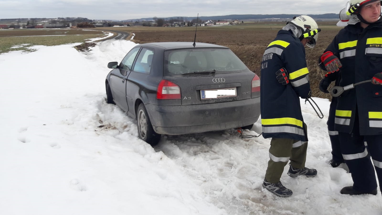 Am 14.02.2019 um 09:43 Uhr wurden wir zu einer Fahrzeugbergung am Feldweg zwischen Großgerharts und Großeberharts gerufen.
