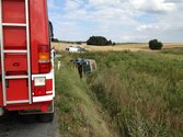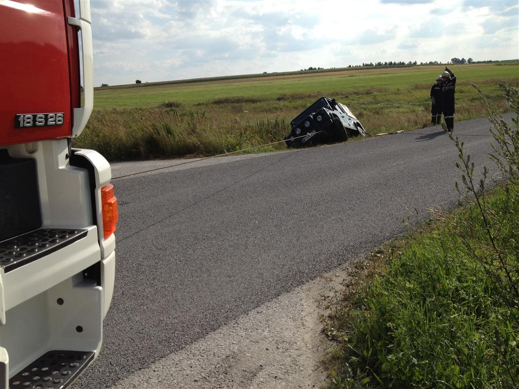 Wir zogen mittels der Seilwinde unseres Rüstlöschfahrzeuges den PKW aus den Graben.
