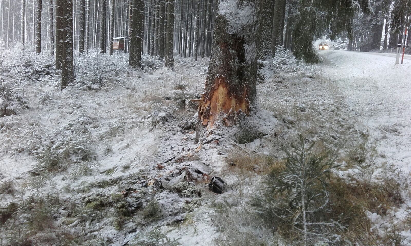 Ein Lenker geriet mit seinem Fahrzeug auf der schneeglatten Fahrbahn ins Schleudern und prallte gegen einen Straßenleitpflock. Der Pkw kam von der Fahrbahn ab und stieß frontal gegen einen Baum. Wie die Polizei berichtet wurde der Lenker leicht verletzt.