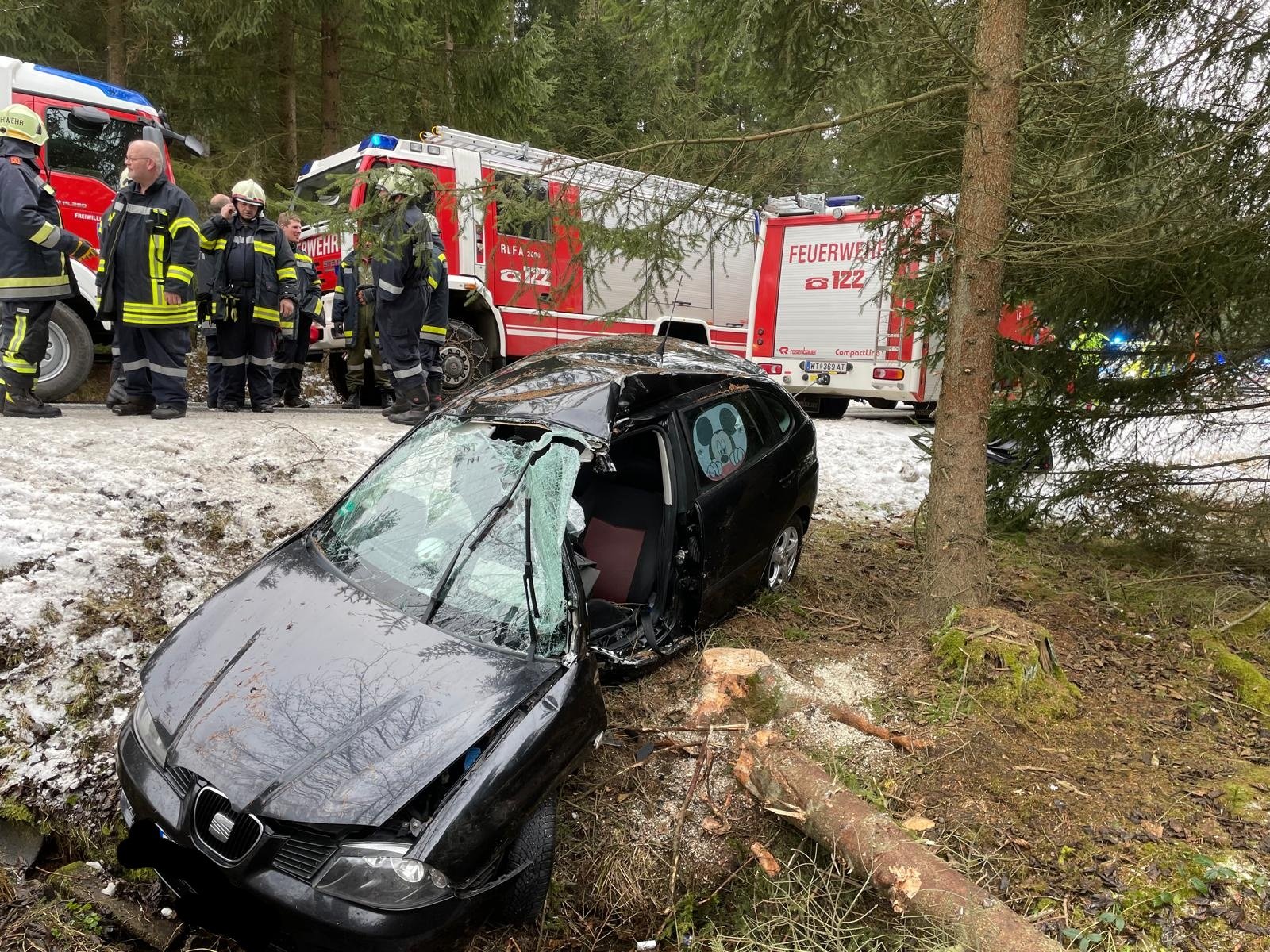 Am 16.01.2025 wurden die Feuerwehren Thaya, Niederedlitz und Merkengersch zu einer dringenden Menschrettung gerufen. Auf der Landesstraße 8164, zwischen Niederedlitz und Göpfritzschlag, verlor eine 28-jährige Lenkerin die Kontrolle über ihren PKW. Das Fahrzeug kam von der Fahrbahn ab, rutschte über die Böschung in den angrenzenden Wald und prallte mit der Fahrerseite gegen einen Baum. Die Fahrerin wurde dabei eingeklemmt, während ihre acht Monate alte Tochter, die auf dem Rücksitz gesichert war, mitfuhr.