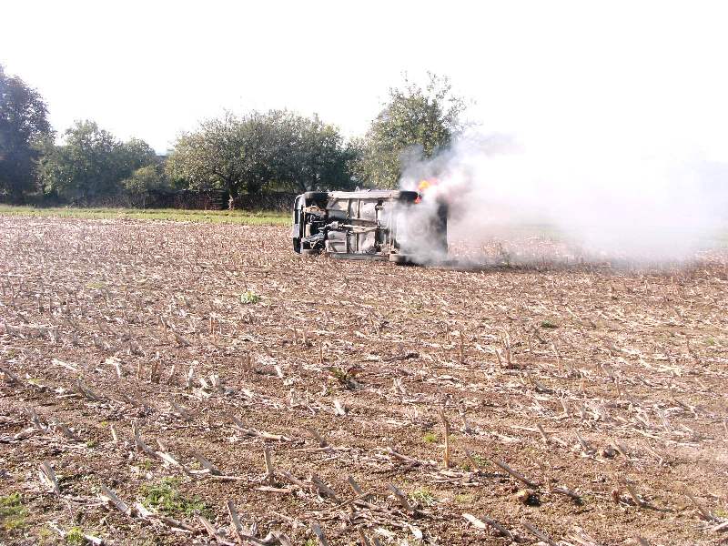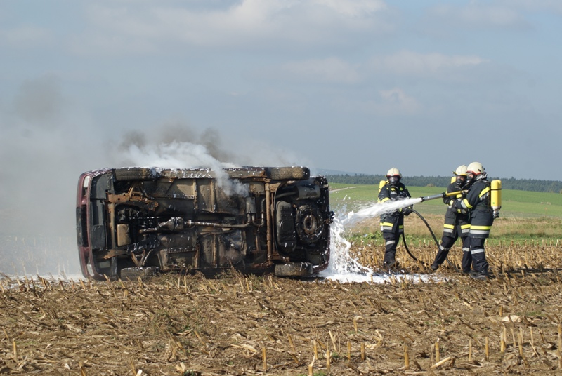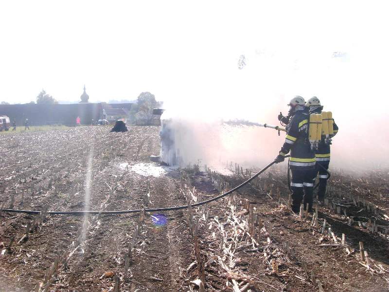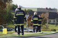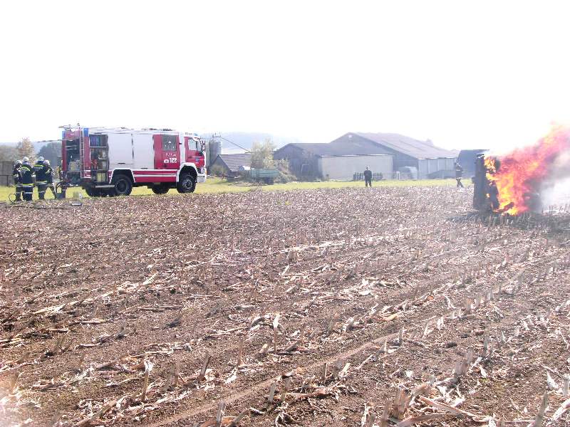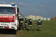 Übungsannahme: Brand eines Fahrzeuges, Brand eines Heuballen und ein Wohnhausbrand mit vermissten Personen