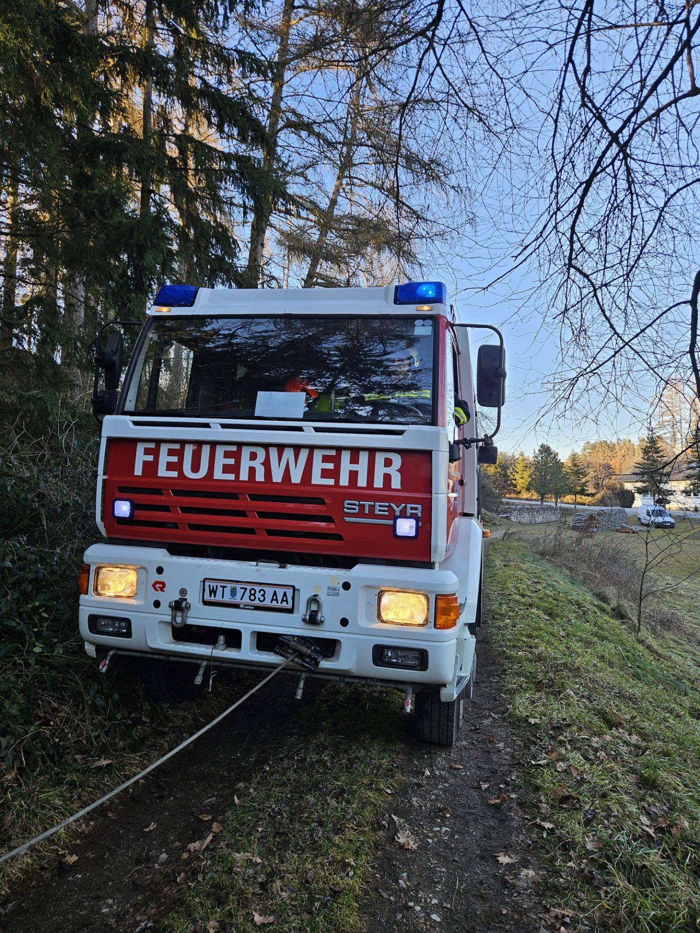 Am 05. Februar 2025 wurde die Freiwillige Feuerwehr Thaya zur Unterstützung bei einer LKW-Bergung in Peigarten gerufen. Der LKW drohte abzurutschen, weshalb die Feuerwehr Thaya ihn mit der Seilwinde des RLFA 2000 sicherte.