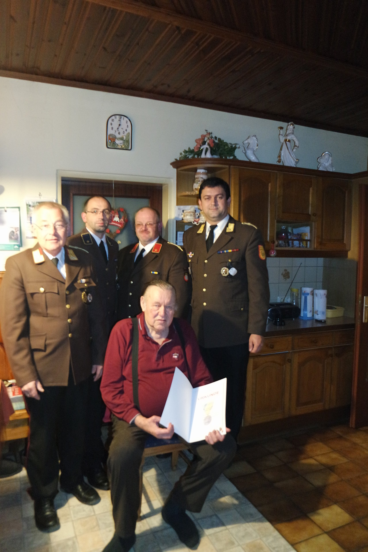 Unser Kamerad Herr LM Rupert Jöch konnte aus gesundheitlichen Gründen das "Ehrenzeichen für 60 jährige verdienstvolle Tätigkeit des NÖ Landesfeuerwehrverbandes" am Abschnittsfeuerwehrtag in Waldberg-Matzlesschlag nicht entgegennehmen. BR Franz Strohmer über gab es deshalb am 17.10.2016 gemeinsam mit dem Feuerwehrkommando im privaten Rahmen.