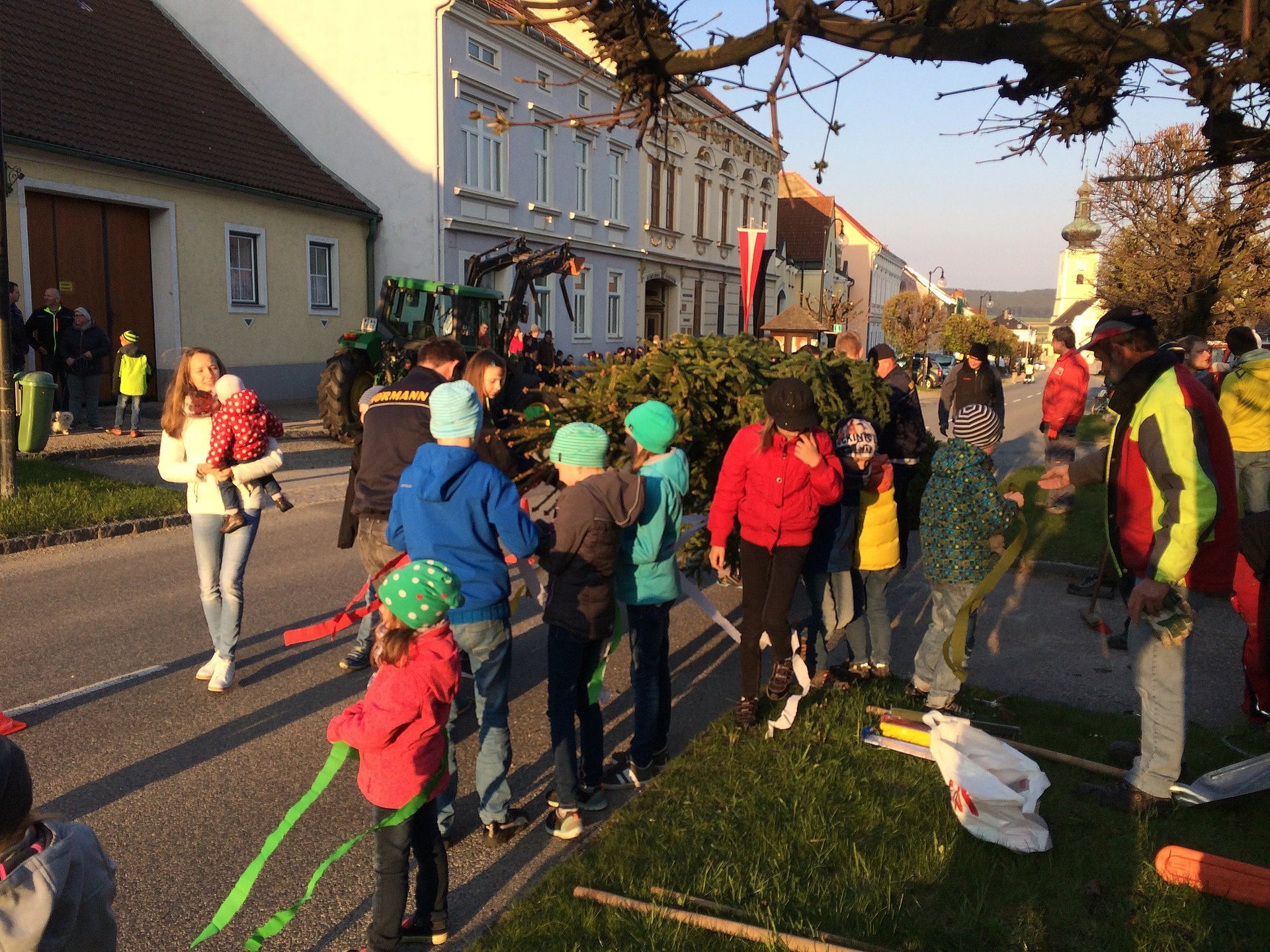 Am 30.04.2017 wurde in der Hauptstraße in Thaya der traditionelle Maibaum aufgestellt.