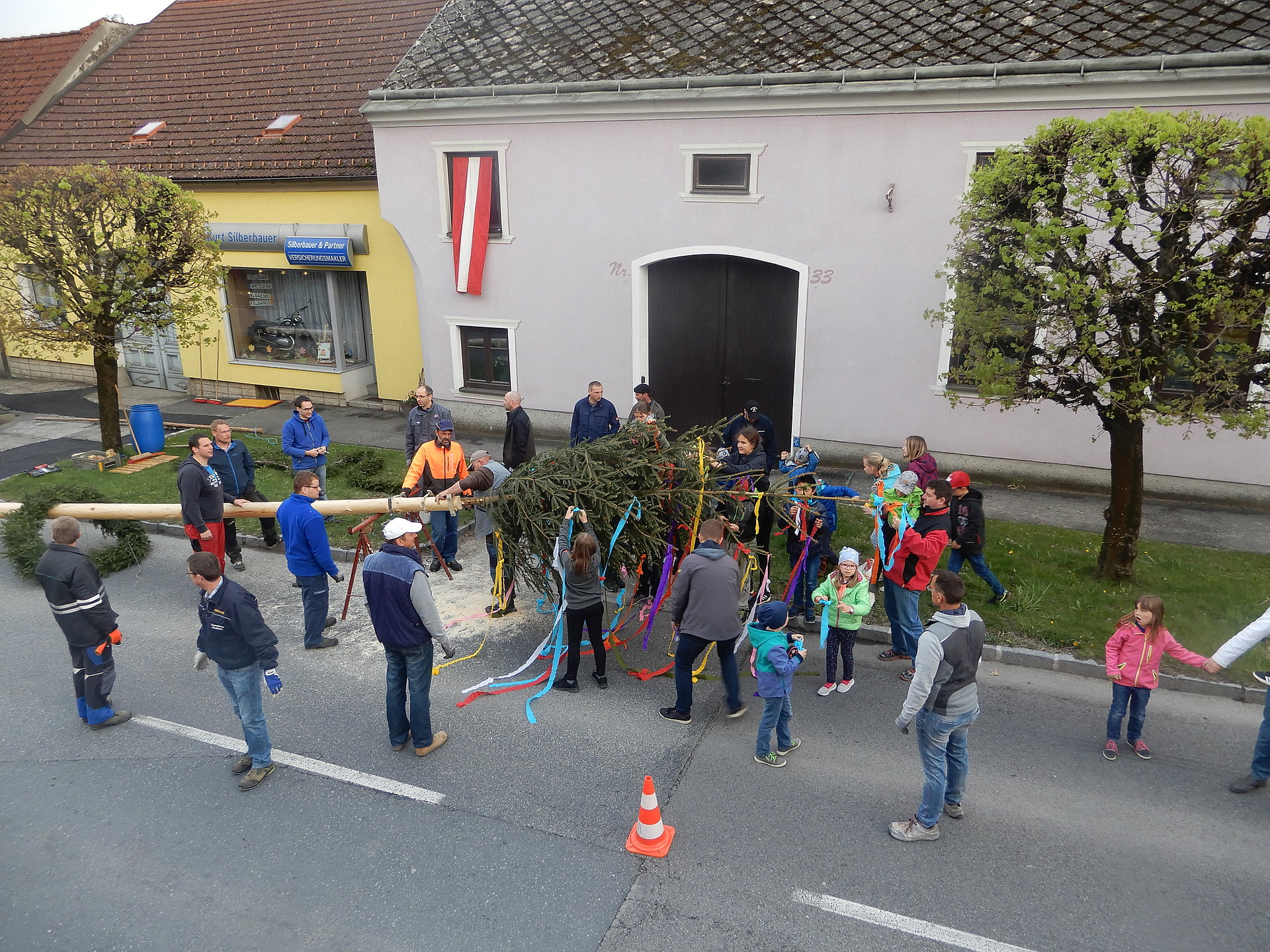 Am 30.04.2019 wurde in der Hauptstraße in Thaya der traditionelle Maibaum aufgestellt.