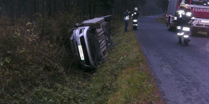 Wobei das Fahrzeug im Straßengraben am Dach lag und daher das Eindringen in das Fahrzeug erschwerte.
