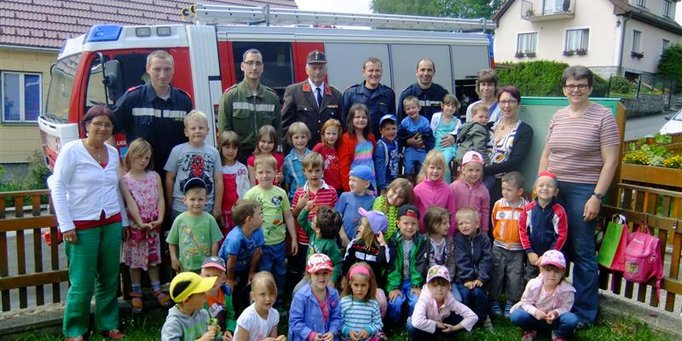 Den Kindern wurde nahegebracht wie die Feuerwehr aussieht und welche Aufgaben sie hat.