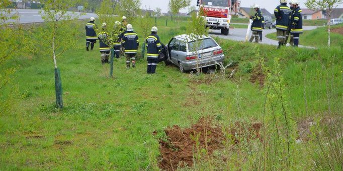 Eine PKW Lenkerin kam aus unbekannter Ursache von der Straße ab und kam auf dem daneben liegenden Feld zum Stillstand.