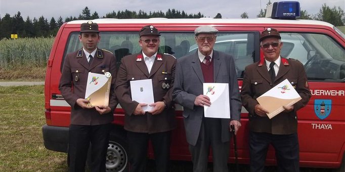 Es konnten auch einige Kameraden der Feuerwehr Thaya für ihre langjährige und verdienstvolle Tätigkeit im Bereich des Feuerwehr- und Rettungswesens ausgezeichnet werden.
