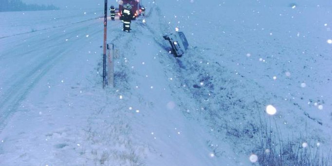 Ein Fahrzeuglenker kam auf der Schneefahrbahn mit seinen Microcar ins Schleuder und kam von der Straße ab.