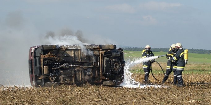 Übungsannahme: ein Verkehrsunfall mit einer eingeklemmten Person.