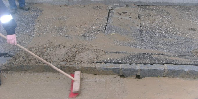 Die Hauptstraße stand unter Wasser und es wurde Sand und Schotter auf die Straße gespühlt.