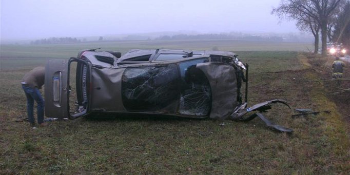 Dabei überschlug sich das Fahrzeug und landete auf dem Feld.