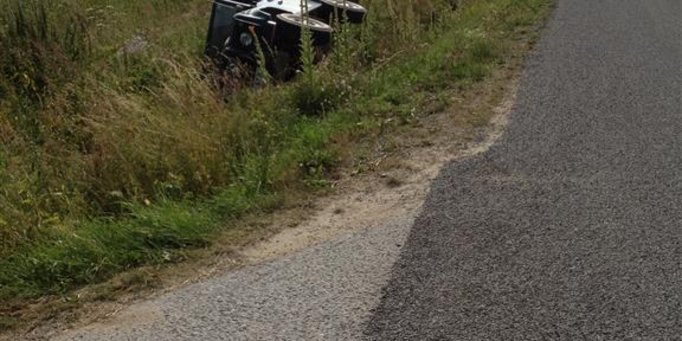 Als wir am Einsatzort ankamen, stand ein drei-Achs LKW zum Teil im Straßengraben.