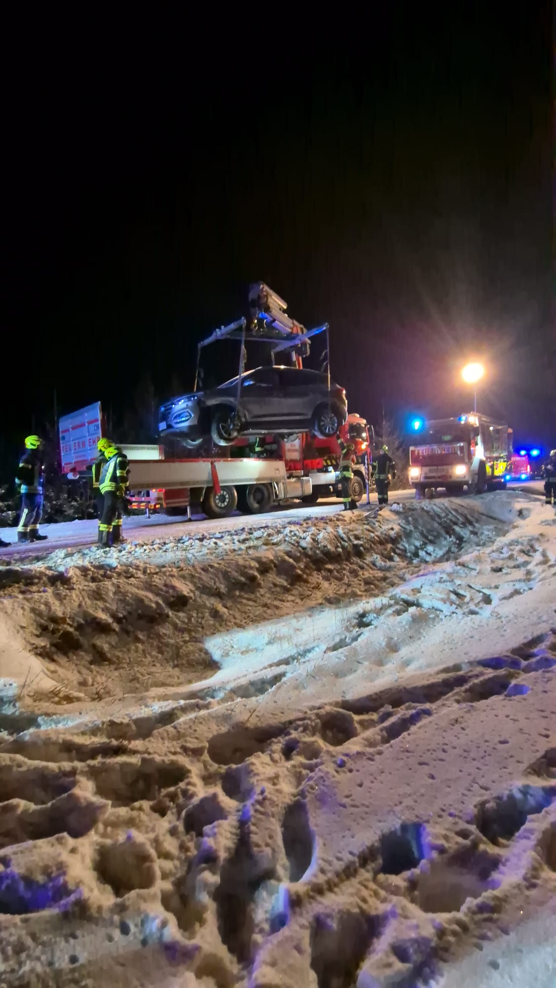 Der beschädigte Rückewagen wurde mithilfe eines zusätzlichen Traktors abtransportiert. Für den Hyundai wurde das Wechselladefahrzeug der Feuerwehr Waidhofen/Thaya zur Unterstützung angefordert. Die Kooperation der freiwilligen Feuerwehren und ihre rasche Reaktion am Ort des Geschehens halfen, die Situation effektiv zu bewältigen.