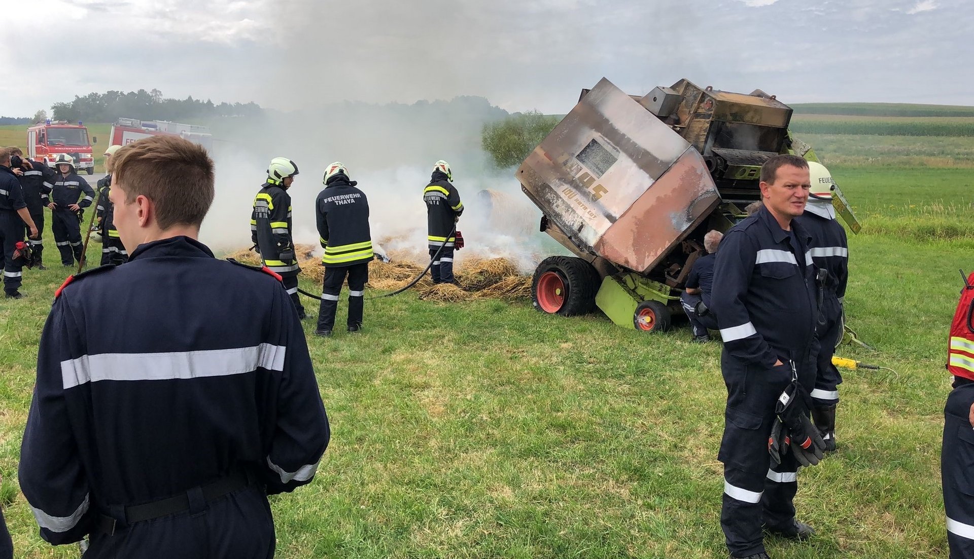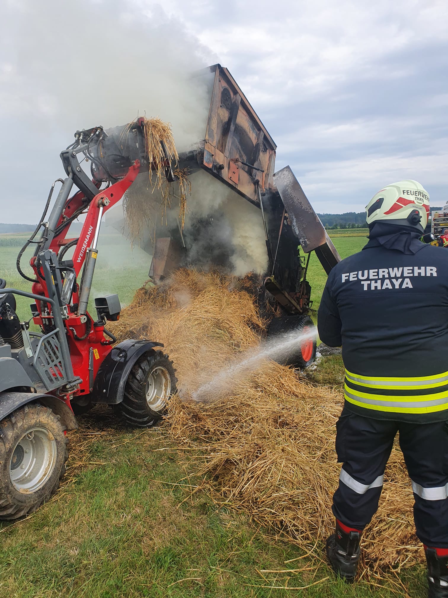 Am 29.07.2022 um 15:47 Uhr wurde die Feuerwehr Thaya zu einem Fahrzeugbrand gerufen. Beim Eintreffen am Einsatzort wurde bekannt das eine Strohpresse in Brand geraten war. Durch einen umfangreichen Löschangriff mit Schnellangriffseinrichtungen konnte der Brand rasch unter Kontrolle gebracht werden und ein weiteres Ausbreiten auf den angrenzenden Feldern verhindert werden. In weiterer Folge musste das Stroh aus der Presse mühsam entfernt und einzelne Glutnester abgelöscht werden.