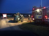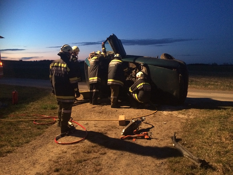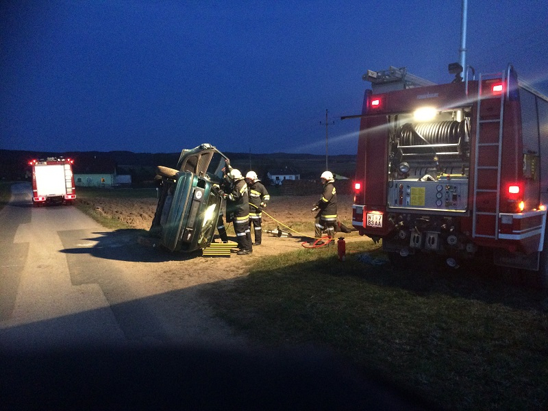 Eingeklemmte Person in einem umgekippten Fahrzeug.
