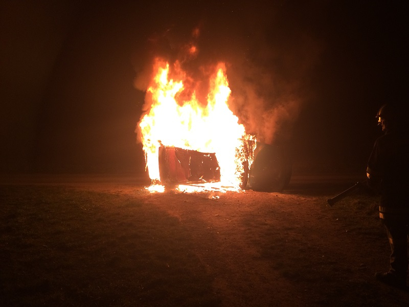 Danach wurde der Löscheinsatz eines brennenden Fahrzeuges beübt.