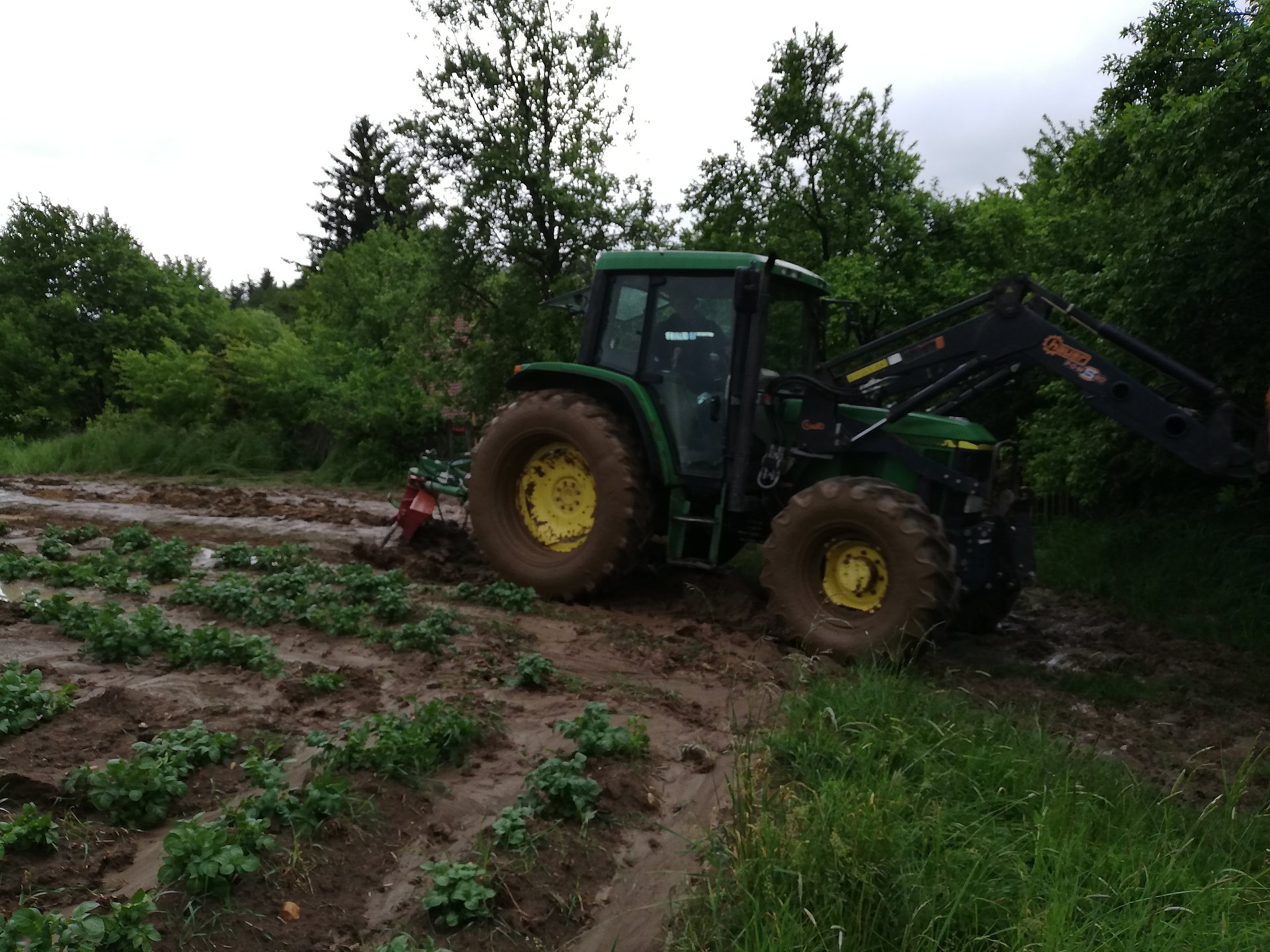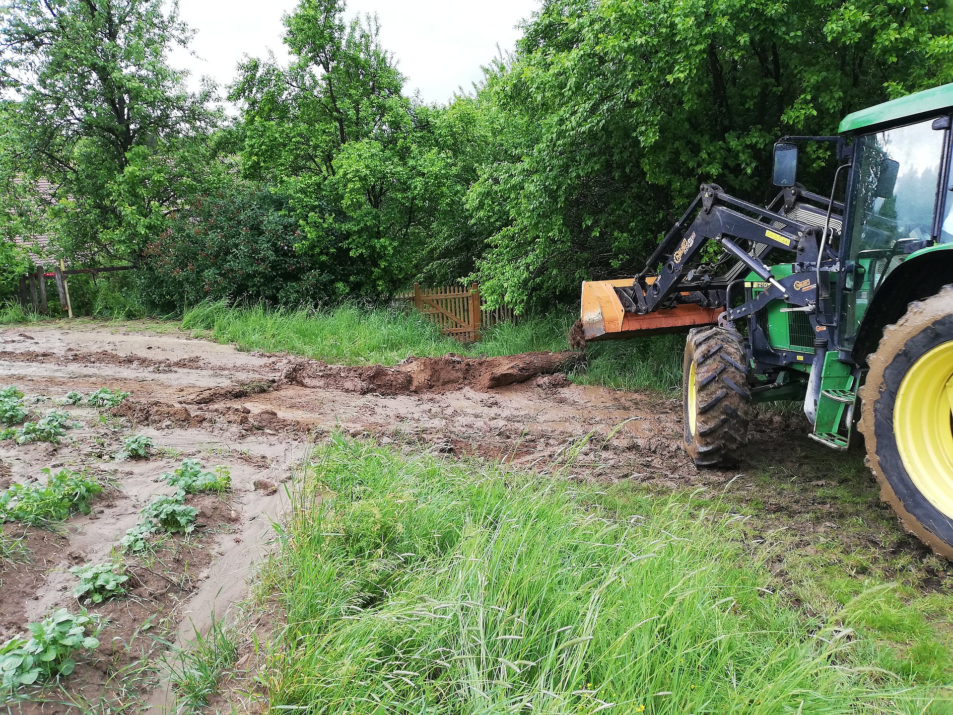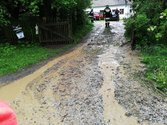 Nachdem wir einen Graben quer über ein Feld gezogen haben um weiteren Wasserschäden zu verhindern wurde die Straße noch gereinigt.