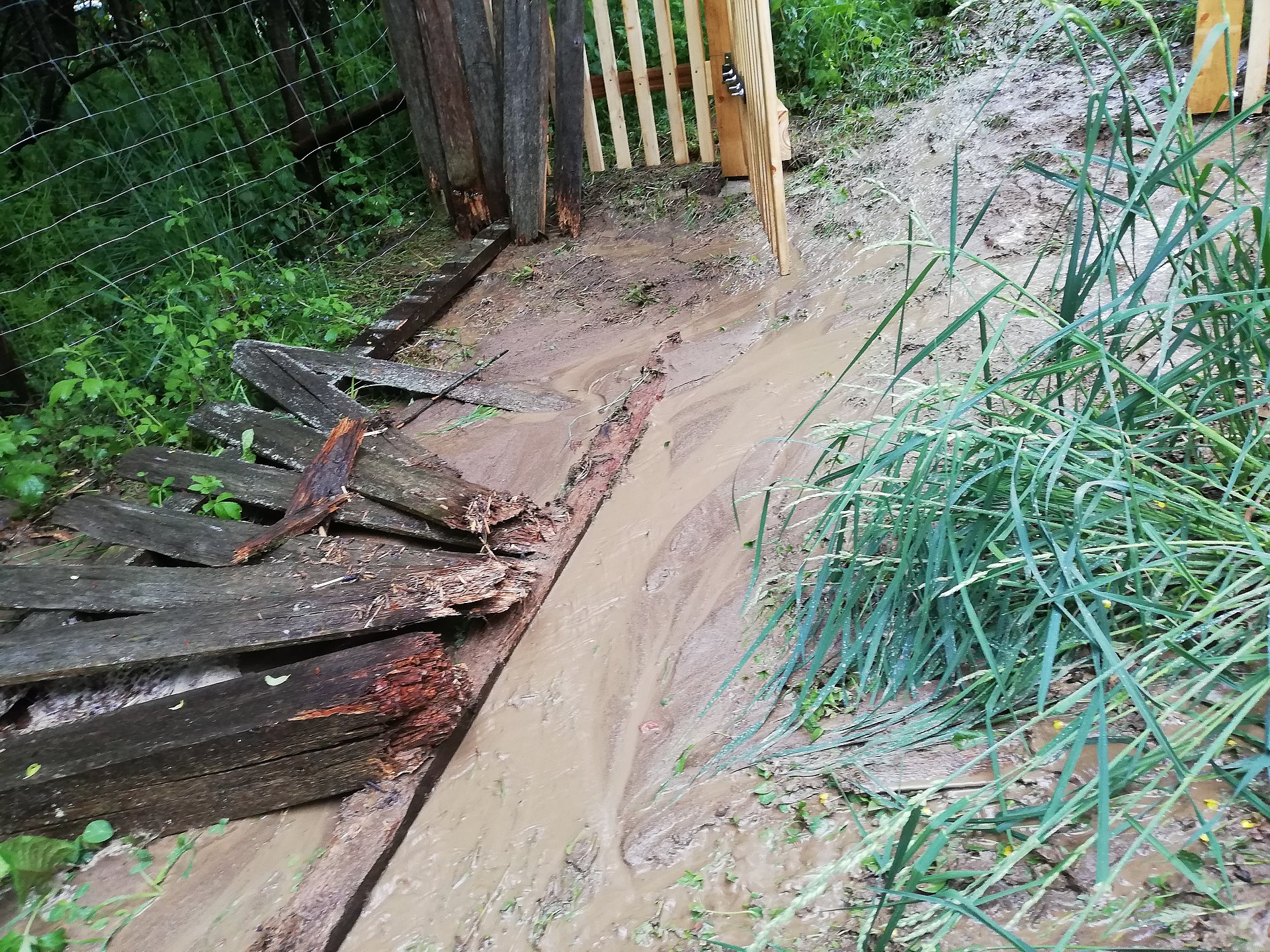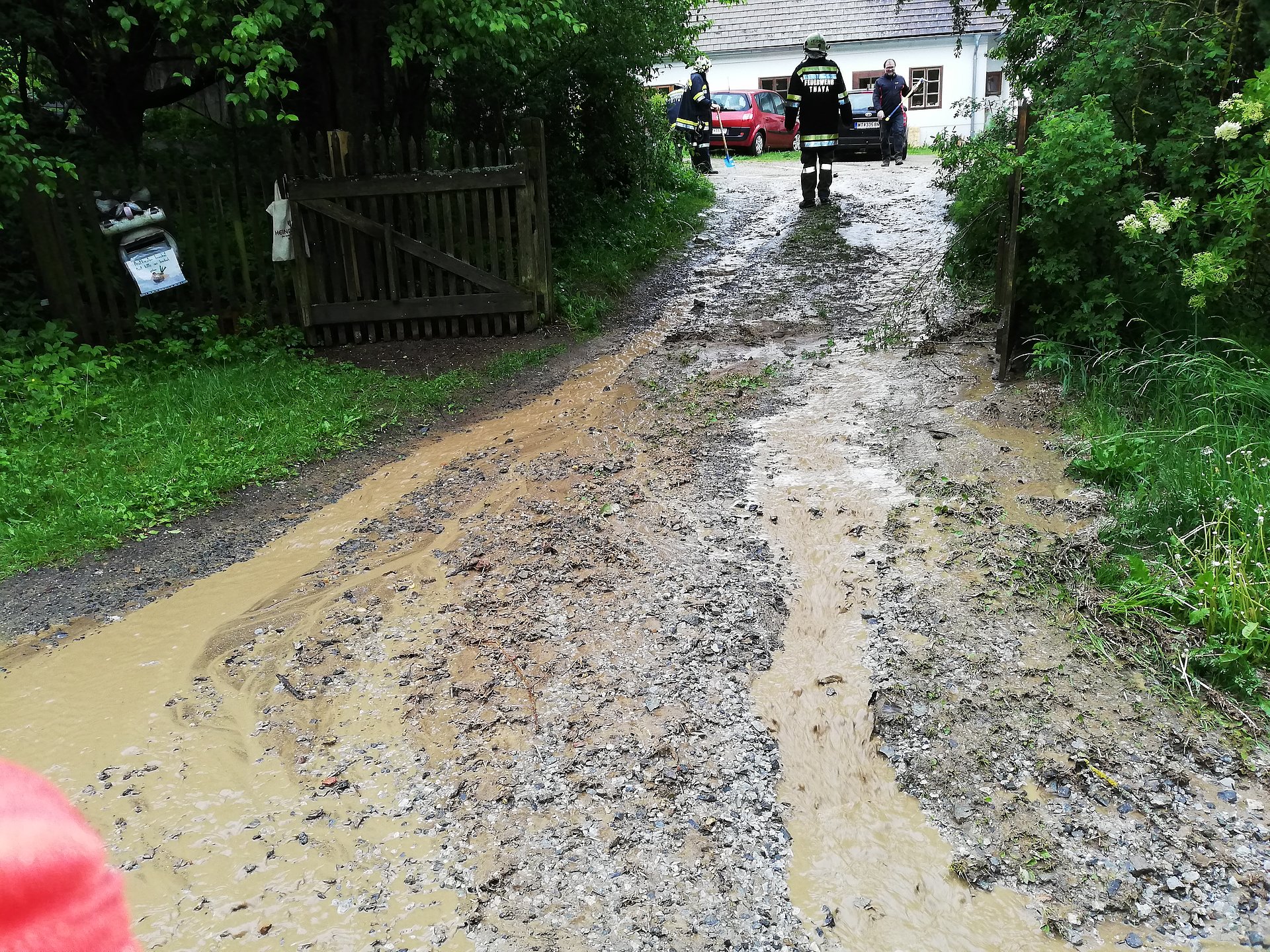 Nach dem heftigen Regen am Samstag Abend rief uns ein Bewohner in den Kibitzhöfe zu Hilfe.