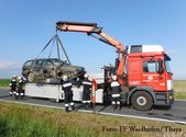 Die Unfallstelle wurde abgesichert und das Unfallfahrzeug von der FF Waidhofen mittels Kran verladen und abtransportiert.