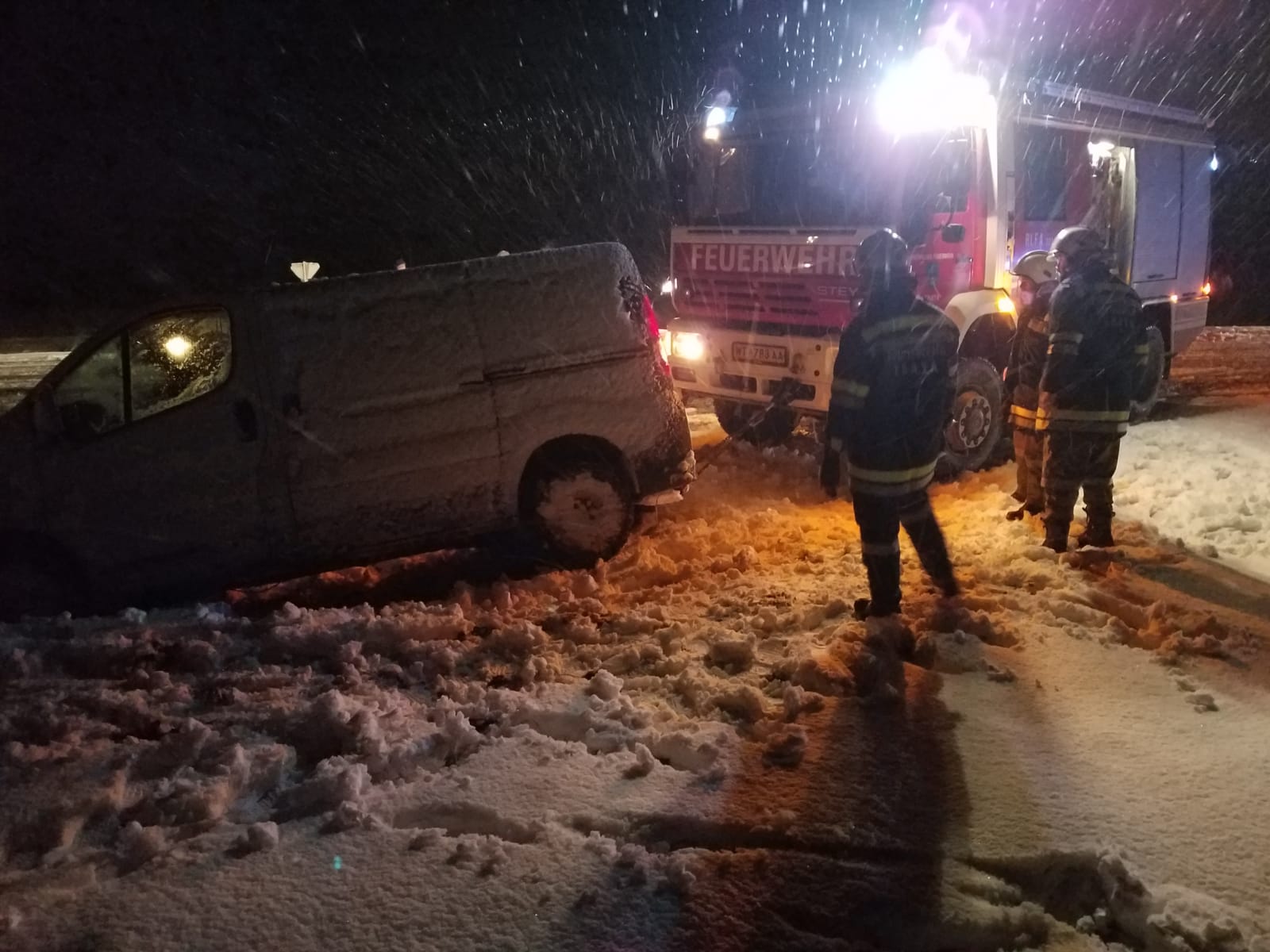 Durch den Neuschnee kam der Lenker von der Fahrbahn ab und rutschte in den Straßengraben.