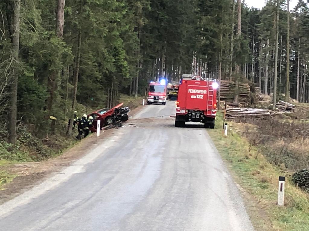Zwischen Thaya und Schlader kam es am Samstag Vormittag zu einem Verkehrsunfall Auto gegen Baum.