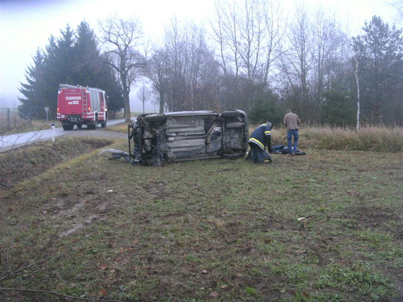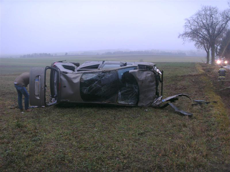 Dabei überschlug sich das Fahrzeug und landete auf dem Feld.