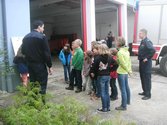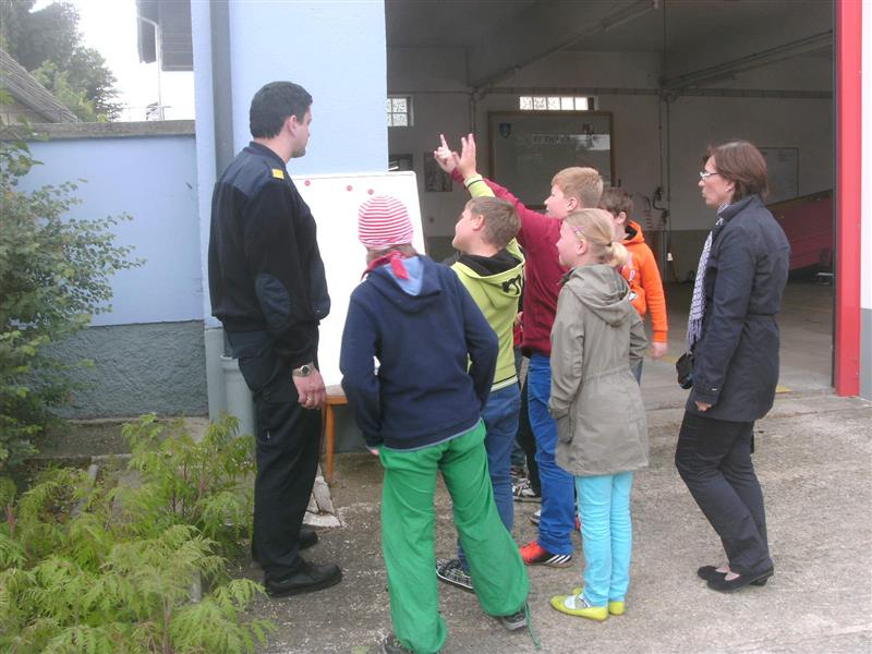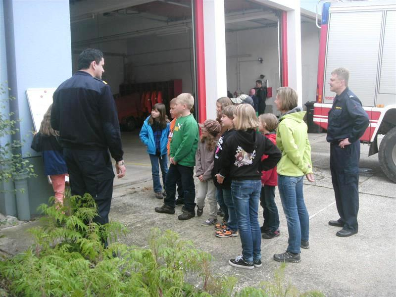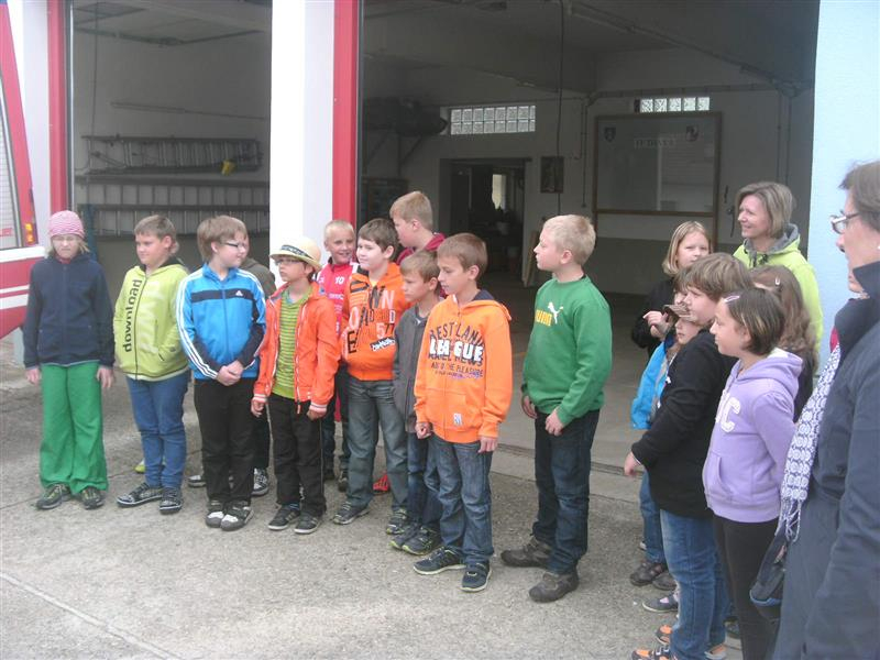 Die Kinder wurden mit den Feuerwehrautos von der Schule abgeholt. Nach etwas Theorie über die Feuerwehr ging es zu einem Rundgang durch das Feuerwehrhaus.