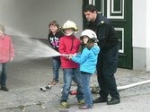 Natürlich durften die Kinder auch das Spritzen mit einem Feuerwehrschlauch ausprobieren.