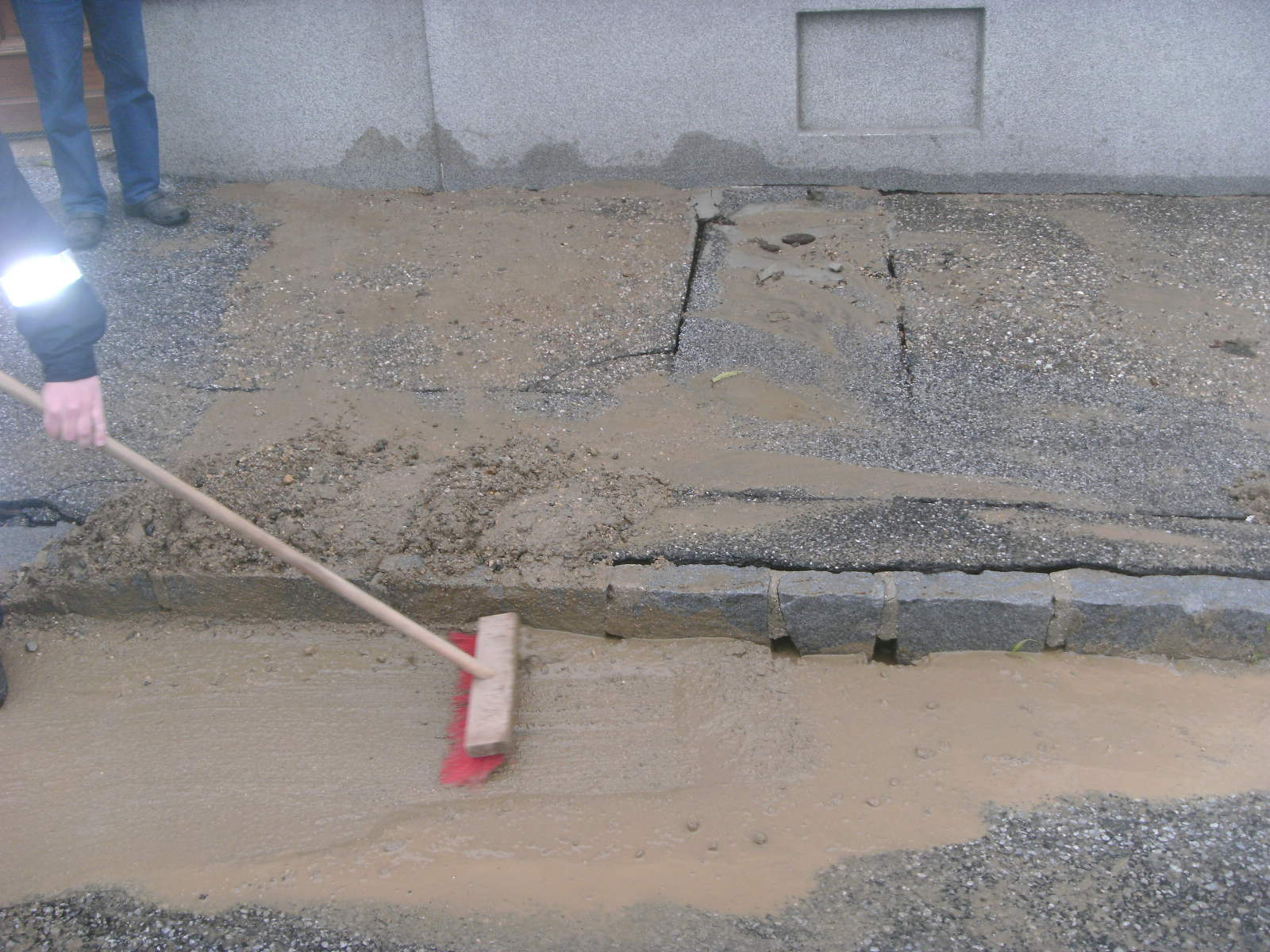 Die Hauptstraße stand unter Wasser und es wurde Sand und Schotter auf die Straße gespühlt.