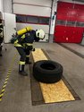 Station 3: Hämmern eines LKW-Reifen über eine Distanz von 3 Metern – Zeit 2 min