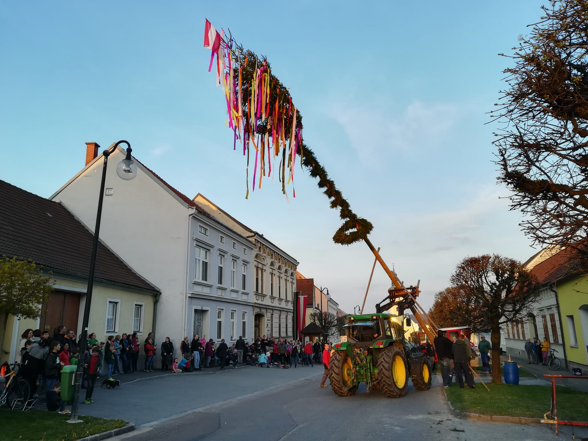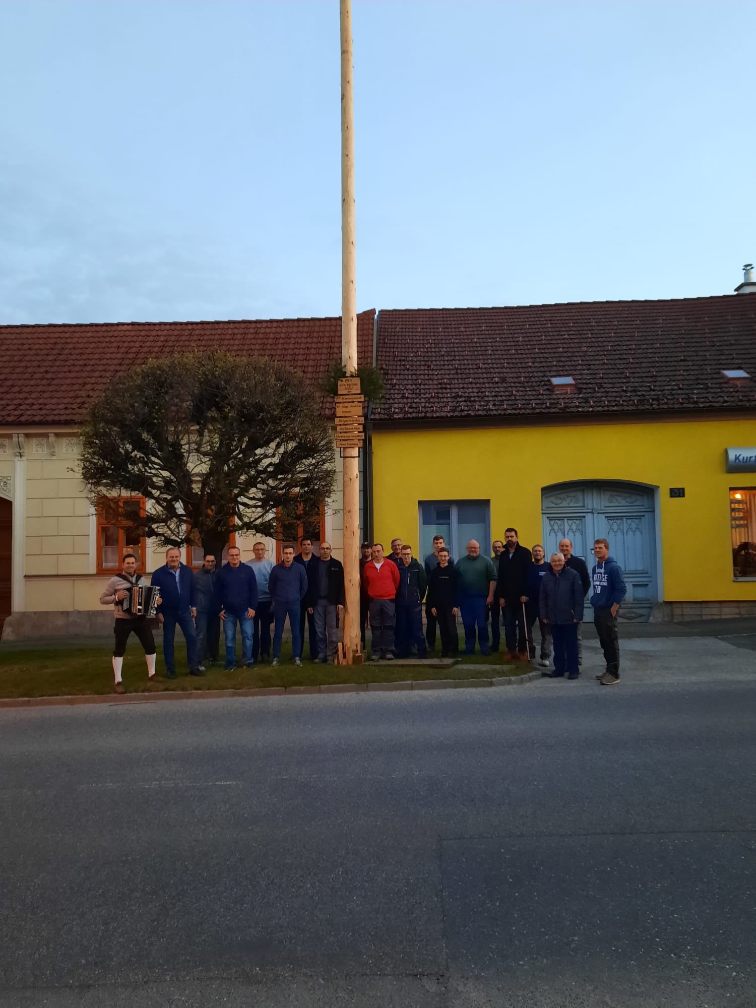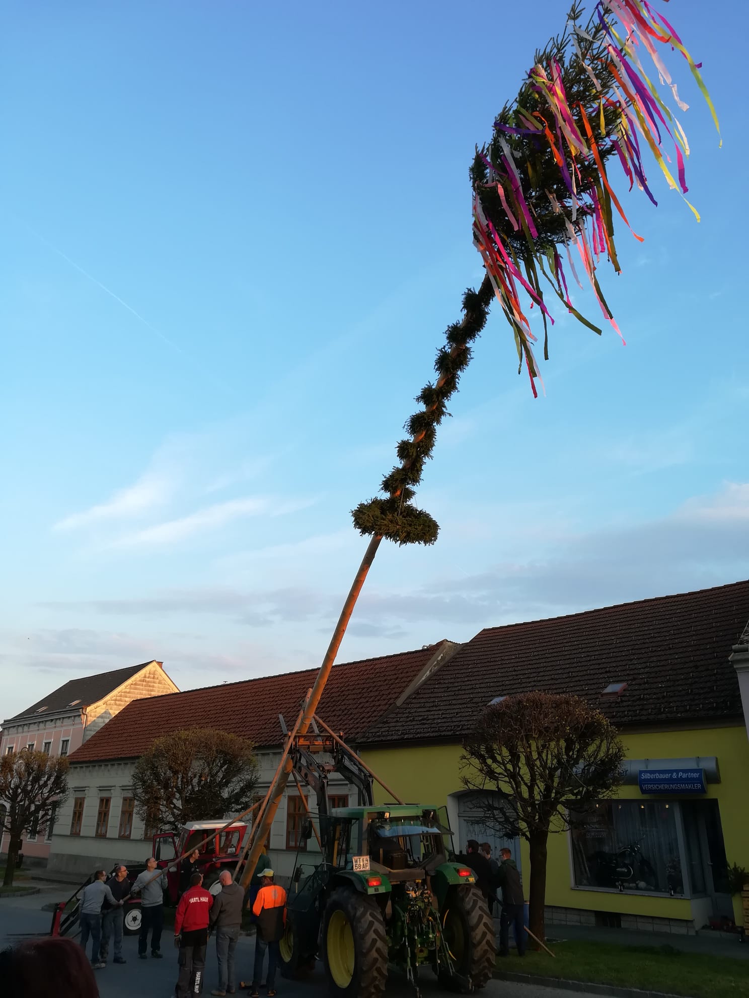 Am 30.04.2022 wurde nach 2 Jahren Pause in der Hauptstraße in Thaya der traditionelle Maibaum aufgestellt.