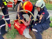 Im ersten Teil wurde der richtige Aufbau einer Löschschaumleitung für den Leicht-, Mittel- und Schwerschaum geübt.