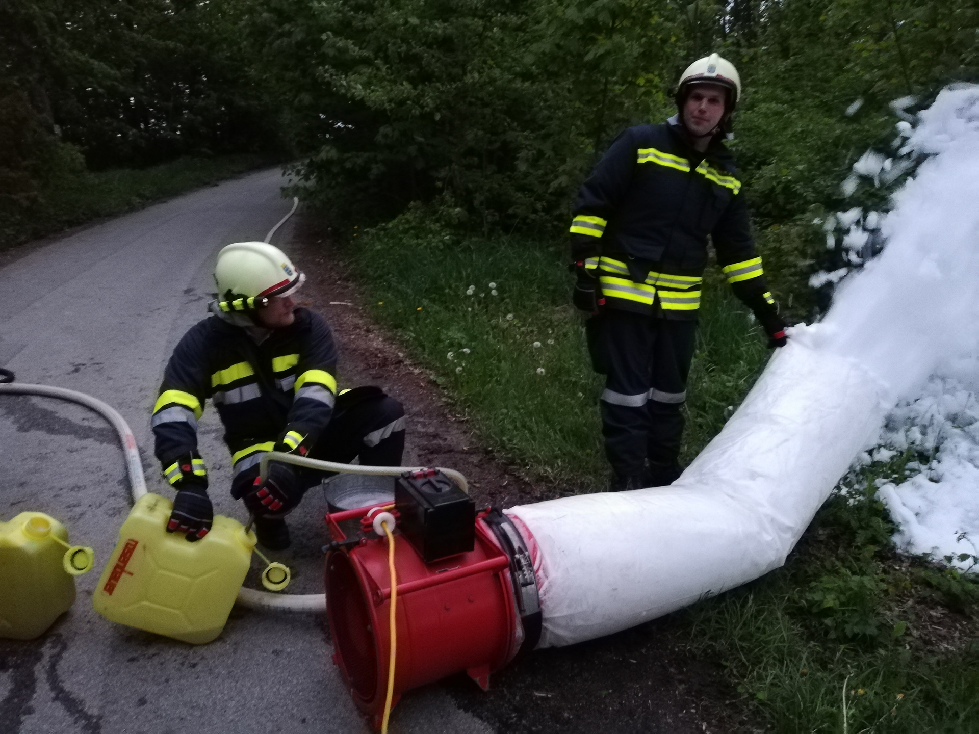 Am 17.5.2019 fand eine Schaumübung statt, wobei der Umgang mit den drei Schaumarten geübt wurde (Leicht-, Mittel- und Schwerschaum)