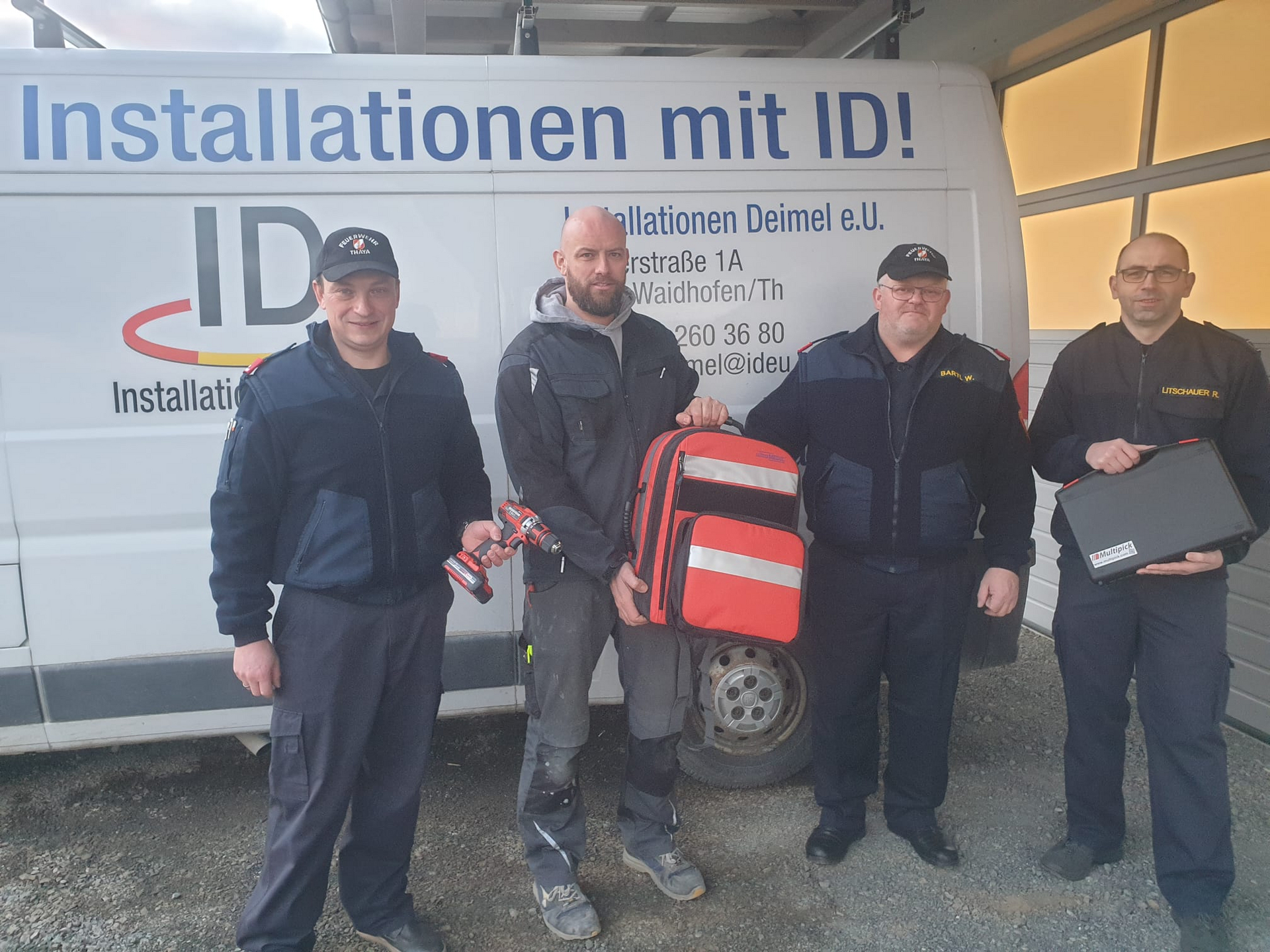 Die Feuerwehr Thaya bedankt sich für die Spende in Höhe von 250€ bei der Firma Installationen Deimel für den Ankauf eines Türöffnungsrucksack.