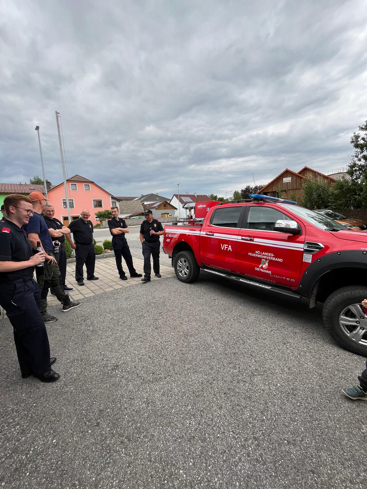 Abschließend wurde noch der Tag nachbesprochen und Ideen für einen zukünftigen Übungstag gesammelt. Die Feuerwehr Dietmanns kam am Abend noch mit ihrem Waldbrand Pickup vorbei und machten eine Vorstellung dessen. Es wurden viele Fragen zum Pickup und dem Sonderdienst Waldbrandbekämpfung gestellt.