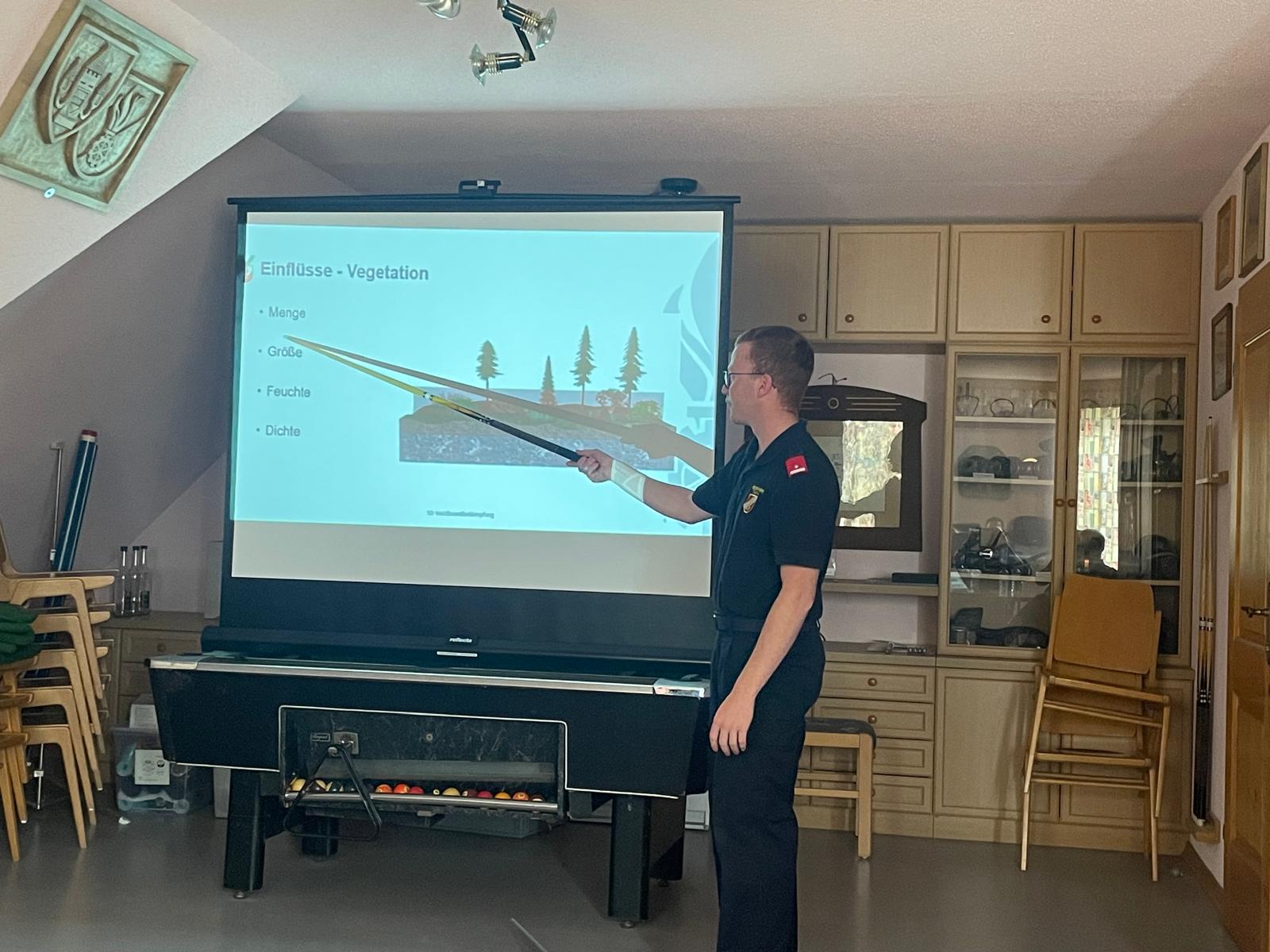Am Nachmittag ging es für unsere Kameraden in den Lehrsaal zu einer kleinen Theorie Einheit zum Thema Waldbrandbekämpfung, so der Plan.