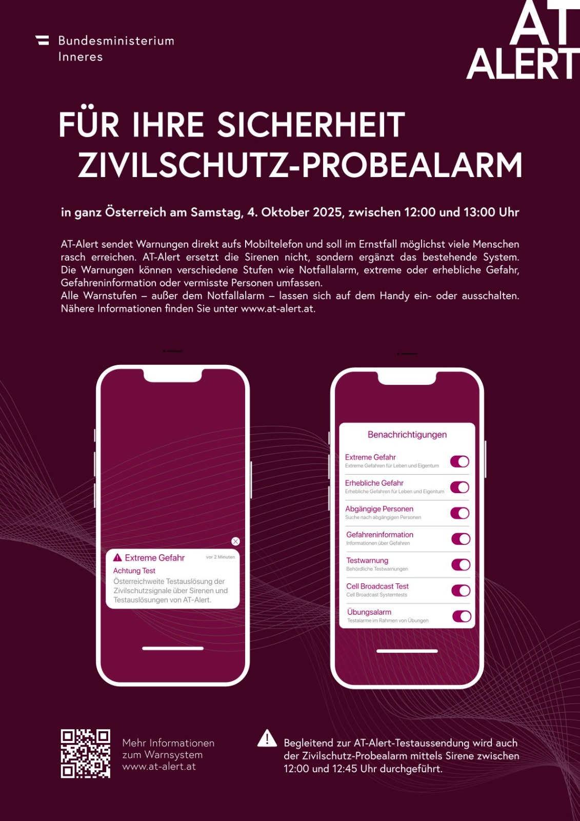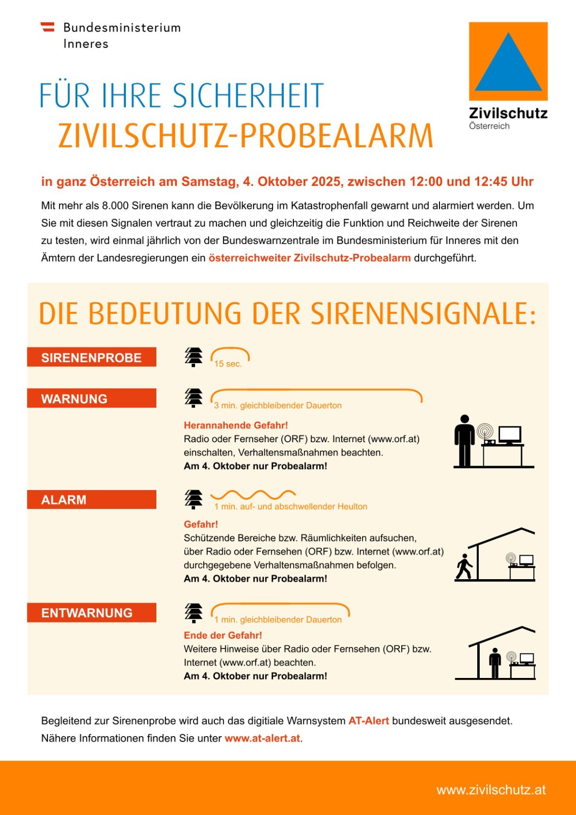 Am 04.10.2025 wird zwischen 12 und 13 Uhr der jährlichen Zivilschutz Probealarm durchgeführt. Dieses Ereignis ermöglicht es der Bevölkerung, die Funktionsweise der Alarmierungssysteme kennenzulernen. Der Probealarm findet landesweit statt und dient dazu, die Effektivität der Warnsysteme zu testen.